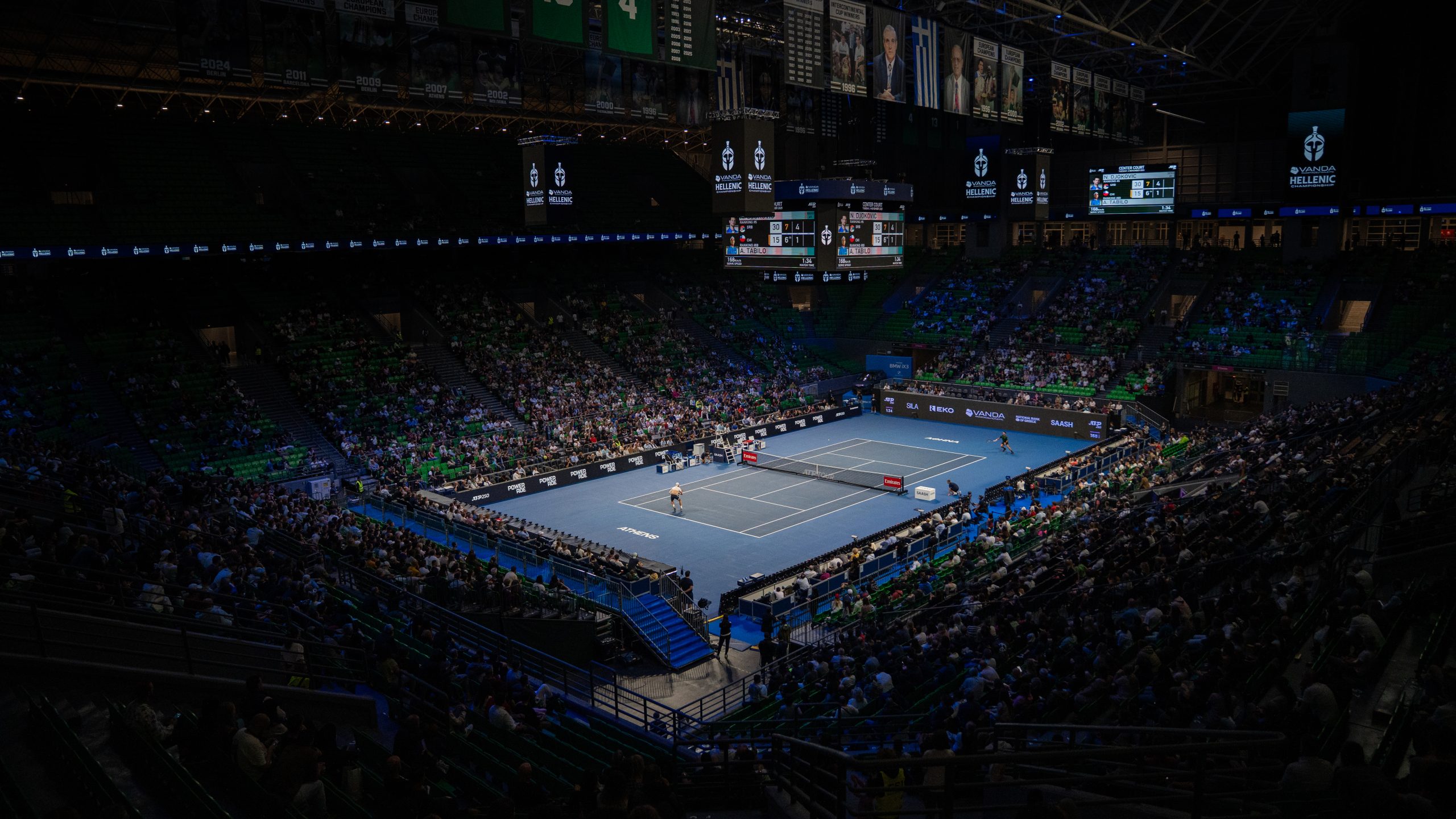 The first major task was converting the large indoor arena at the OAKA complex into an ATP-ready tennis venue. This meant installing professional hardcourts, setting up broadcast lighting, arranging player facilities, designing seating that brought fans close to the action, and many more.